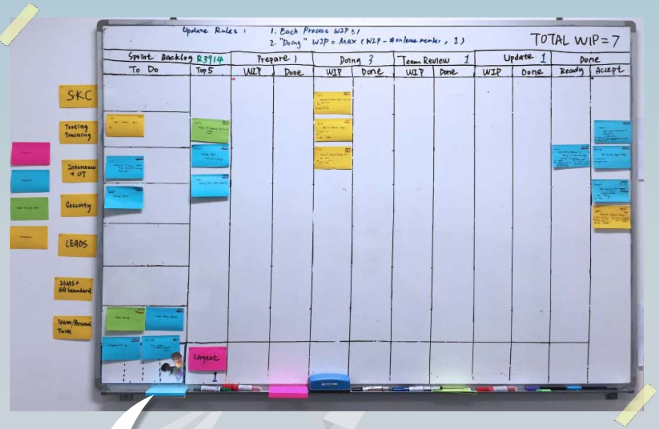 Kanban is about evolution, not revolution. It hinges on the fundamental truth that you can’t get where you want to go without first knowing where you are. If you have already attended the Kanban training, either internal or external, we are sure you know what a Kanban is and what good it brings for a team. Kanban underpins a “Just-in-time” (JIT) system that allows us to visualise our work and workflow, limit work in progress (WIP) items by reducing unfinished work (waste) and redundant task switching. Walking past the working areas in Titansoft, you will notice each team now has a uniquely-designed Kanban used to visualise their workflow. No one Kanban is the same as another as each Kanban caters specifically to each team’s needs and requirements. Let’s go on a tour of the different Kanbans!