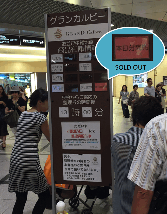 Who enjoys queuing? I bet not many, because people generally do not like waiting. So how can we turn queuing into a pleasant experience? I encountered one example in my recent trip to Japan. It is about queuing for Calbee french fries (snacks) at the food floor in the basement of a Department store.