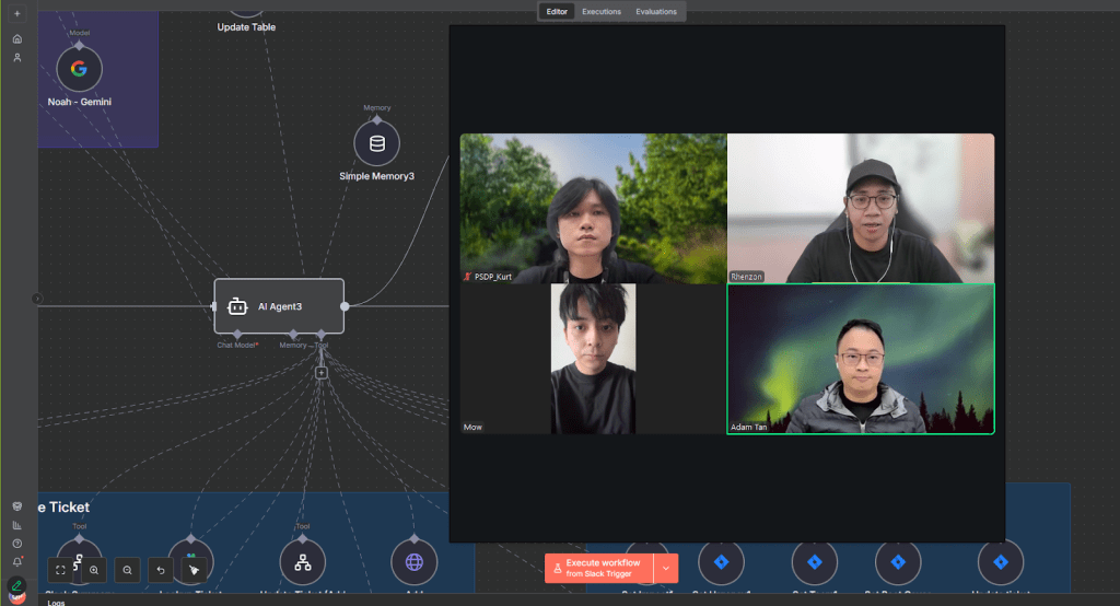 He proposed an idea: form a small internal team to explore how AI could actually help the Production Support Department Program. This idea came from his belief that if you have something valuable to share, you have a “moral responsibility to share it.” With the support of his manager, he gathered a few passionate teammates, including Mow, Kurt, and Adam and started brainstorming.