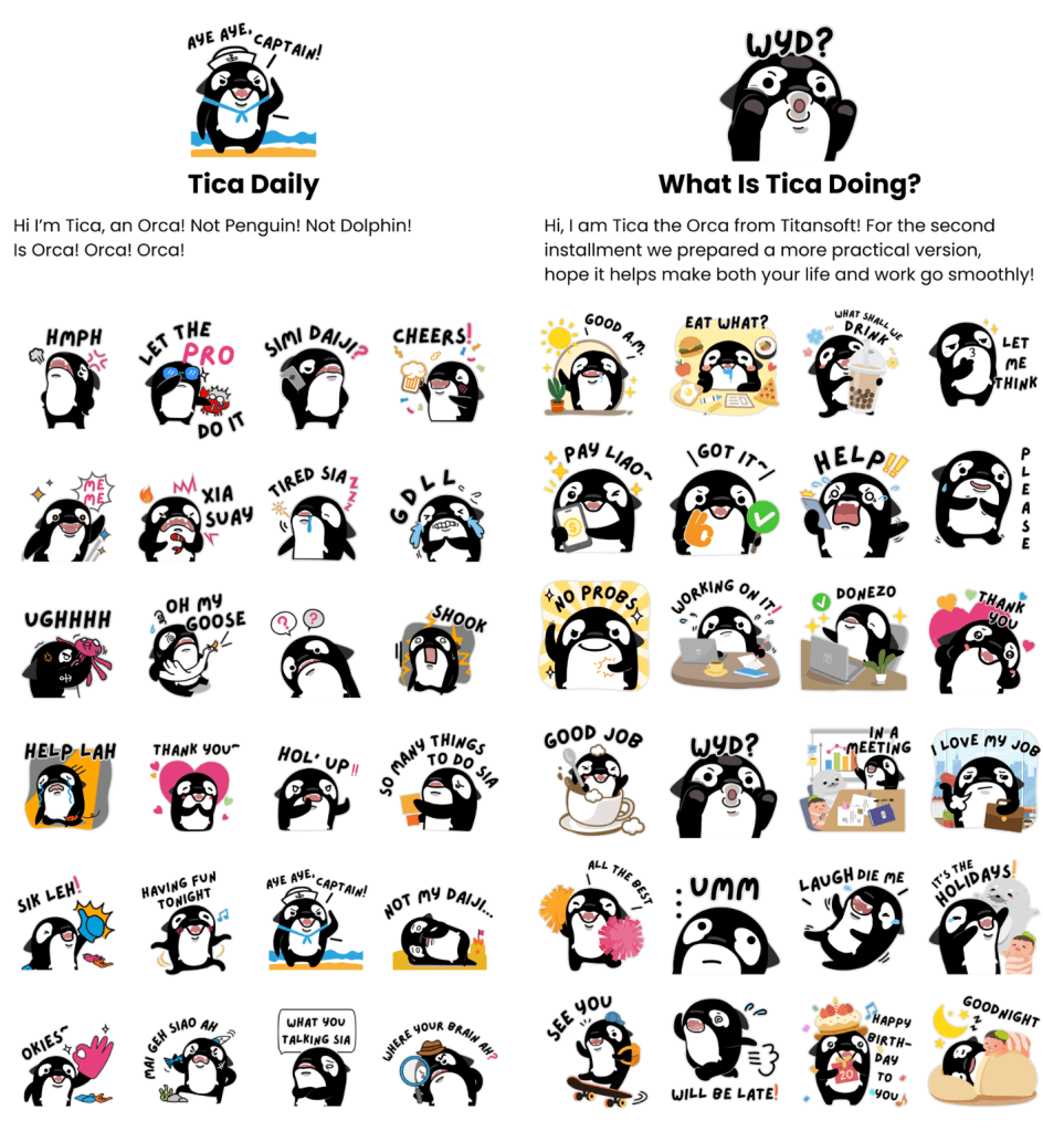 This wasn’t our first time creating Telegram stickers. Our first set, “Tica Daily”, leaned heavily into playful humor. While it was cute and timely, it wasn’t the most practical for everyday use.