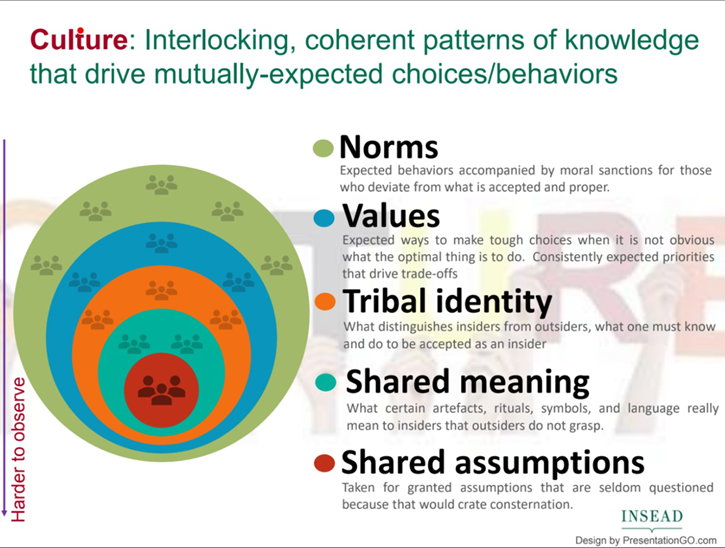 To help her, I referenced the INSEAD Professor Anderson’ Culture Model, an expanded application of Edgar Schein’s three levels of organizational culture: